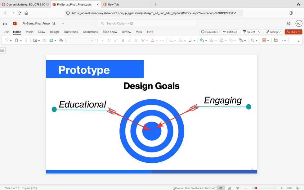 We presented our prototype to Intuit representatives and classmates at the conclusion of the project. Each team member held both lead and support roles; my primary responsibility was multimedia design, with a secondary focus on prototype design. This experience strengthened my teamwork and collaboration skills while reinforcing my ability to deliver a successful product that met all project requirements and deadlines.